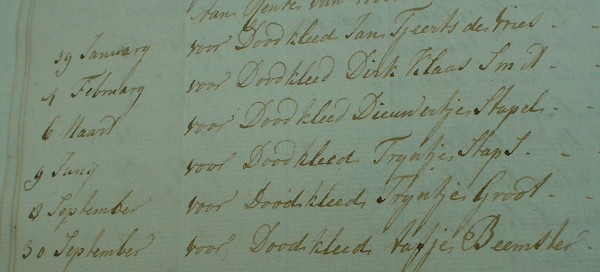 Bij de inkomsten worden ook de doodskleden gemeld: