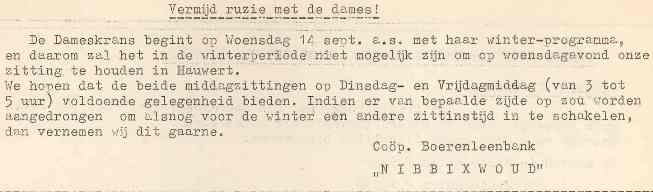 van 9 september 1966, kwam de Dameskrans bijeen in de consistoriekamer