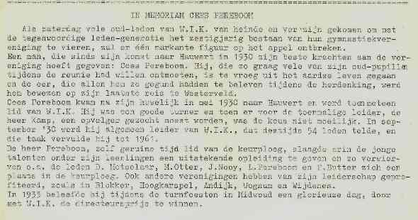 gymvereniging W.I.K. overlijdt Cees Peereboom, de algemeen