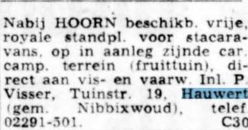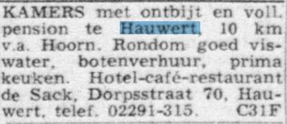 in Hauwert op te richten. In de Dorpskoerier van 3 augustus