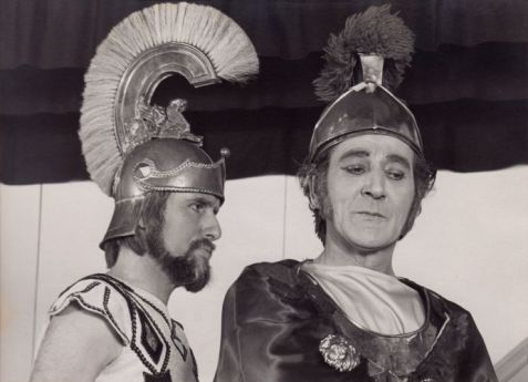 Premiere 'Lysistrata' Theo Schaft (Themistocles) en rechts Jan Monen